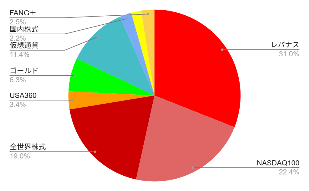 ゴールドと仮想通貨がやや下げていますが、レバナスはじめ株式が絶好調です。