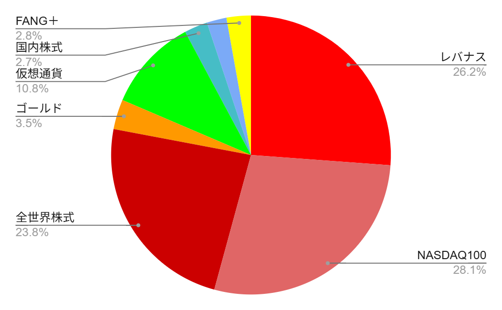 資産も増えてきたため、レバナスを一部売却し、レバナス割合を下げています。